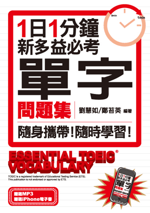 本書特色: ★附贈iPhone電子書 / Android手機同時試用 ★雙核心雙效學習 成效加倍 →新多益必考單字列表 快速記憶: 表列出多益必考單字1000個,附上音標、單詞解釋、例句及例句解釋。 →新多益必考單字問題集 完全命中: 精選160題多益必考單字問題,附上詳細解答,以實做的問題學習多益單字。