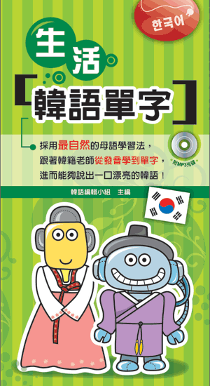 48K小開本,隨帶隨走。版面清爽,一目瞭然。採用最自然的母語學習法,由簡入深,循序漸進,讓開口成為身體的自然反應!另外,單詞下方還有加註依照韓國國立國語研究院頒布的羅馬拼音表記法所標示的羅馬拼音和中文讀音,讓您遇到變音完全沒煩惱!隨書再附贈韓籍老師領讀的MP3,物超所值,學習加倍! 生活單字?第一個印象就是數字、時間和購物…沒錯,這就是生活!本書除了收錄上述的基本單字之外,還收錄了經常被忽略掉的辭彙喔!譬如,動植物的名稱、各種疾病和醫院單位的說法,還有多種運動項目以及去銀行、郵局時會常用到的單詞! 另外,嚮往韓國時尚的俊男美女們,一定要去首爾時尚地–新村朝聖一翻,順便到髮廊做個最潮的髮型。不知道怎麼說?就快來參考美容美髮篇!除此之外,我們也收錄了韓國主要觀光地地名及傳統技藝名稱,讓您到韓國不只是購物,更能貼近韓國的傳統美! 本書最後,還特別摘錄了生活會話54句,除了基本的招呼語之外,還有到韓國旅遊時可能會用到的句型,讓初學者的您也能輕鬆逛韓國!
