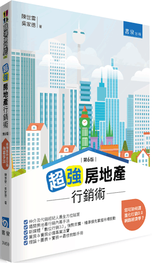 →仲介及代銷經紀人員全方位祕笈 →揭開房地產行銷內幕手法 →新媒體「數位行銷」強勢來襲,精準領先掌握市場脈動 →買房&賣房必備專業法寶 →理論+圖表+實務=最佳教戰手冊