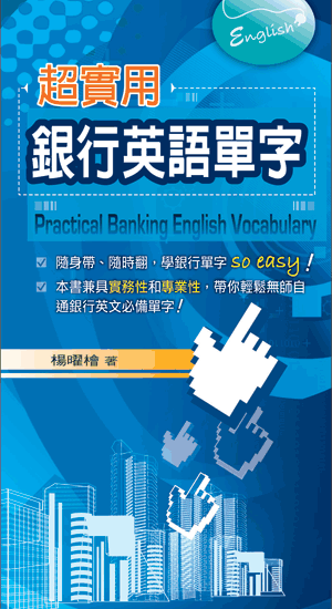 1 依照「銀行業務」分類,查找方便:分為一般交易、自動化銀行、外匯、支票業務、信用卡、保險業務、放款和理財七大類。 2 附錄內容豐富實用:收錄銀行口語常用轉承語、銀行各部門和重要機構、銀行客服電話、銀行每日一句。 3 袖珍版本,隨身帶、隨時查。 隨身帶、隨時翻,學銀行單字so easy!
