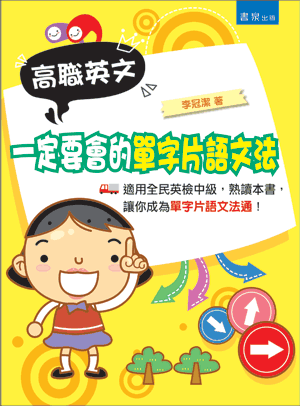 作者序 第一篇:重要必備單字篇 第一單元:名詞 第二單元:動詞 第三單元:形容詞 第四單元:副詞 第五單元:考前快速掃瞄 第六單元:測驗 第二篇:片語和慣用語篇 第一單元:依「單字歸類」的片語和慣用語 第二單元:依「主題分類」的片語和慣用語 第三篇:文法篇 第一章:英文文法基本觀念 第二章:十二時式之簡單式 第三章:十二時式之進行式 第四章:十二時式之完成式 第五章:十二時式之完成進行式 第六章:動詞 第七章:動狀詞之不定詞 第八章:動狀詞之動名詞 第九章:動狀詞之分詞 第十章:被動 第十一章:名詞 第十二章:代名詞 第十三章:形容詞 第十四章:副詞 第十五章:介係詞 第十六章:連接詞 第十七章:假設語氣