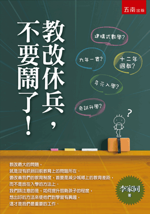 第一章 九年一貫 第二章 九年一貫課程要求孩子們的十大基本能力 第三章 快樂學習? 第四章 建構式數學 第五章 廣設大學 第六章 專科學校的沒落 第七章 廢止大學聯招 第八章 十二年國教的基本觀念 第九章 免試升學 第十章 特色招生 第十一章 結論 後記