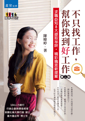 前言 一直找不到理想工作,怎麼辦? 什麼樣的工作才算是好工作呢? I求職不可不知的10大管道 II成功前進理想想工作的8大祕訣 Step 1.盤點自己所具備的「工作能力」 可以為你帶來收入的「工作能力」有哪些? Step 2.釐清自己的求職目標,了解自己真正想做的是什麼?! 不要拿別人的期待當夢想!想想「你,是誰?」 Step 3.了解目標工作要求,有計畫的充實相關職能、建立作品與實績 為什麼夢想一直只是空想? 不好不壞的工作,你要做一輩子嗎? Step 4.簡單打造超吸睛制勝「履歷」 為什麼你的履歷被當垃圾? 擺脫求職已讀不回魔咒! Step 5.讓一篇好「自傳」,為你爭取到理想工作 自傳說對好故事, 你會成為企業競相爭取的搶手貨! Step 6.面試屢戰屢敗,竟然是因為你不懂這些事? 面試做好這些準備,成功抓牢九成把握! Step 7.薪資待遇怎麼談?有談沒談差一倍! 薪水都是談出來的! 「依公司規定」當然永遠「依規定低薪」! Step 8.世上沒有完美工作,夢想工作通常都是自己創造出來的 別再拘泥於傳統的求職方式與職涯發展, 找出屬於自己的獲利模式吧! III20個「社會新鮮人」與「跨界轉職新手」友善職務:無強硬學經歷限制 A.洞悉市場×創意人 B.沙場主將×開拓者 C.綜觀全局×操盤手 D.運籌帷幄×觀察者 E.智慧優雅×代言人 F.其他:新世代變種人 IV發現快樂工作職人:那些人的「幸福工作學」 A.誰說一個人只能擁有一種職涯身分? 他是壽司師傅、自然觀察家、民宿服務員 B.常保熱情與好奇心的人,從不無聊! 台灣最特別的職業,最特別的人:來自印尼的奇女子 C.公園裡的街頭音樂家 「我只是全心全意的做著最熱愛的事, 錢自然就這樣進來了」 D.跟日本民宿老闆阿公阿嬤學「敬業」 用崇敬的心看待工作,驕傲的擁有它, 然後擁有最完整的自己 E.非主流Model到古著店夢想家:不受控的西班牙女孩 她說:「天啊!為什麼要活成別人喜歡的樣子? 看看妳自己,多美呀!」