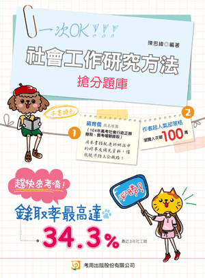 不必通勤跑補習班浪費時間,考用名師幫大家把歷屆試題按章節及重要度,有系統性的整理好了!「社會工作研究方法」是社工系學生普遍覺得最難準備的一門考科,本書編者細心地於申論題逐題提示解題方向,同時亦延伸提醒考生應注意的相關考點,建立考生準備相關題型的完整性;在測驗題部分,逐題解析,可以讓考生辨別正確答案與錯誤答案的細微差距,進而同步建立清晰正確的選題觀念與技巧,在考場插上勝利之旗。