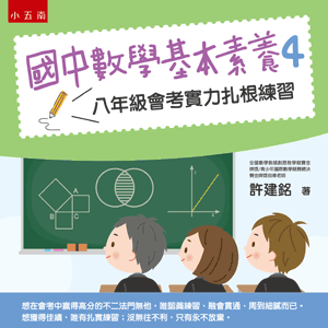 本書是接續《國中數學基本素養1》與《國中數學基本素養2》之後的第四冊,撰寫目的是當前臺灣中小學教育正值進入新課綱之際,作為七、八、九年級生在競爭激烈的升學戰役中實戰鍛鍊之用。書中每個主題中的試題皆分成選擇、填充與非選擇,共三種題型,而且每道試題皆附有詳盡的解析。 核心知識散亂、不重視基本題型、較高層次的思考問題練習太少,是造成很多用功學生數學學習低成就的重要成因。有鑑於此,書中創作與安排的試題除了完全符合新課綱的學習指標外,也包括了具觀念性、思考性、統整性、活用性、前瞻性的問題,希望開發、培養學生縝密、全方位的數學思考力,提振學生的學習興趣與自信心,以奠立強大的會考應考實力。