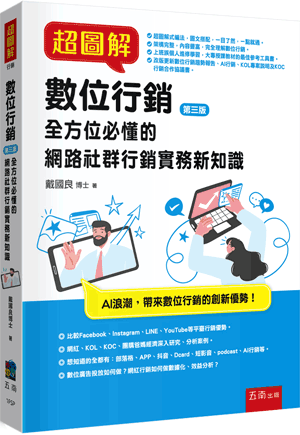 第一章 數位行銷概論 1-1 數位行銷的定義、架構體系及其與傳統行銷之差異 1-2 臺灣數位行銷的最新六項趨勢報告 1-3 數位行銷的最新十三大趨勢 1-4 《Digital 2025》最新趨勢!臺灣的數位行銷三大關鍵洞察與趨勢 1-5 DMA 發布的2025 年調查報告:重點摘要 1-6 常見的十三種數位行銷方法 1-7 如何選擇數位廣告代理商的四要點 1-8 數位行銷與傳統行銷的比較分析 1-9 數位行銷可帶來哪些數據分析 1-10 網路(數位)廣告基本術語 1-11 數位行銷的十種招數 1-12 某數位行銷代理公司的服務細項項目、人選類型及網紅合作流程示例