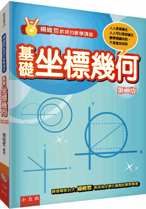 Chapter 1 簡單幾何概念 1.1 直 線 1.2 圓 1.3 軌跡,三角形的心 1.4 拼湊原理 Chapter 2 笛卡爾坐標系 2.1 直線上的坐標系 2.2 平面上的坐標系 Chapter 3 面 積 3.1 多邊形的面積 3.2 格子多邊形的面積 3.3 代數與面積 3.4 畢氏定理 3.5 Heron(黑龍)公式 3.6 距離公式 Chapter 4 坐標法的初等概念 4.1 方程式與圖解 4.2 函數與圖解 Chapter 5 一次函數與直線 5.1 一次函數 5.2 斜 率 5.3 直線的斜截式一般式 5.4 直線的其他形式 Chapter 6 垂 線 6.1 正方形 6.2 垂 直 6.3 最小平方法 6.4 點線距 Chapter 7 三角形的心 7.1 中垂線與高線 7.2 分角線 7.3 幾何應用 Chapter 8 線性規劃 8.1 一次不等式的圖解 8.2 規劃問題 Chapter 9 折線與斷線 9.1 斷 線 9.2 折 線 9.3 折線與不等式 Chapter 10 日本算額集例(上) 正方形的衍生 正三角形的衍生 正五角形的衍生 Chapter 11 圓 11.1 圓的範式 11.2 圓與直線 Chapter 12 圓冪與圓周角 12.1 切線之長與圓冪 12.2 圓周角定理 Chapter 13 日本算額集例(下) 13.1 兩圓一線相切 13.2 三圓相切 13.3 雜 例 Chapter 14 錐 線 14.1 拋物線 14.2 橢 圓 14.3 雙曲線 Chapter 15 算術代數與幾何 15.1 Sarrus:矩陣方陣與定準 15.2 二維向量的算術 15.3 Gibbs的算術 15.4 對稱交錯與輪換 Chapter 16 複數的介紹 16.1 複數的代數 16.2 絕對值原則 16.3 Gauss平面 16.4 輻 角 Chapter 17 三角學的介紹 17.1 三角函數 17.2 一般角的三角函數 17.3 加法公式 17.4 反正切與兩線交角 Chapter 18 指數函數 18.1 指數函數 18.2 單頻振動 18.3 雙曲函數 18.4 等比級數