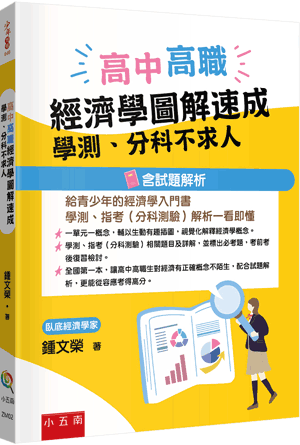 給青少年的經濟學入門書 學測、指考(分科測驗)解析一看即懂 ●一單元一概念,輔以生動有趣插圖,視覺化解釋經濟學概念。 ●學測、指考(分科測驗)相關題目及詳解,並標出必考題,考前考後復習檢討。 ●全國第一本,讓高中高職生對經濟有正確概念不陌生,配合試題解析,更能從容應考得高分。